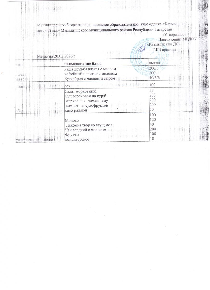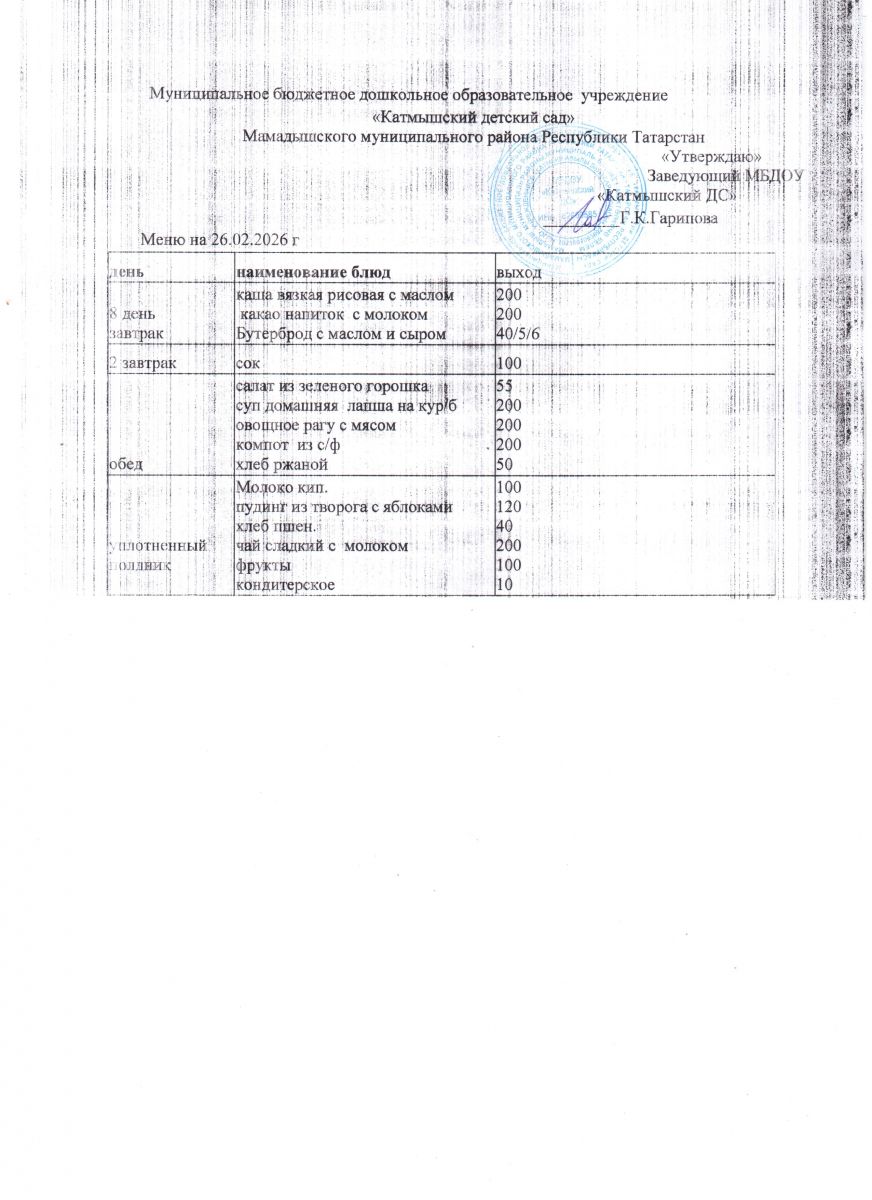 Адрес: Республика Татарстан, Мамадышский район, с. Катмыш, ул. Гагарина, д. 1