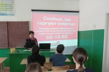 В рамках акции" Сообщи где торгуют смертью", проходят тематические беседы с презентациями и видеороликами "Профилактика наркотической зависимости".