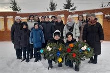 Учащиеся школы почтили память односельчан, погибших на фронтах Великой Отечественной войны, и положили венок памяти к подножию памятника неизвестному солдату.