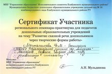 Региональный семинар – практикум на тему: «Развитие связной речи дошкольников через творческие формы работы». 26.11.2015