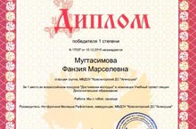Награждаются дипломом I степени Давлетбаева Ландыш Ринуровна и Мугтасимова Фанзия Марселевна во Всероссийском конкурсе конспектов непосредственно - образовательной деятельности "Воспитатель нового поколения".