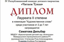 В детском саду прошло мероприятие, посвященное Дню рождения великого татарского поэта Габдуллы Тукая «Без Тукай оныклары». Воспитанники читали стихи поэта, пели, инсценировали стихотворение «Забавный ученик», «Дитя и мотылек» и др., отгадывали загадки о временах года, вспомнили сказки и героев произведений Г. Тукая. На праздник пришел самый известный герой из одноименной сказки писателя – Шурале, который развесилил всех игрой «Кети-кети». С увлечением дети играли и в игру «Су анасы». В завершение праздника были подведены итоги и награждены грамотами участники конкурса рисунков «Мой любимый герой сказок Габдуллы Тукая» и конкурса чтецов «Читаем Тукая».