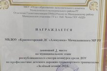 Наш сад занял 1 место на муниципальном этапе республиканского смотра- конкурса среди ДОУ по профилактике детского дорожно-транспортного травматизма «Зеленый огонек- 2024»