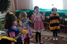 На музыкальное занятие в гости к детям прилетали пчелы и поиграли с ними в игру "Кара туфрак,туган жир"