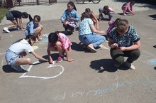 Этот день в пришкольном лагере отмечали День России: провели беседу на тему «Наша родина – Россия», конкурс рисунков мелом на асфальте "Россия – моя любимая страна".