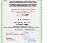 "Нәни йолдызчыклар" республика күләм фестиваль бәйгедә Нәҗмиева Зифа "вокал-соло", Мукашева Альбина " нәфис сүз" номинацияләрендә 1нче дәрәҗә дипломнарга лаек булдылар.