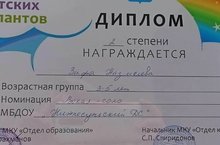 2нче урын белән "Вокал" номинациясендә җиңү яулаган кызыбыз, Назмиева Зифаны котлыйбыз!