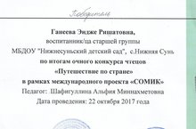 22 нче октябрь көнне бакчабыздан Ганеева Энҗе Яр Чаллы шәһәрендә үткәрелгән "СОМик" конкурсында катнашып "Җиңүче" булып кайтты.Афәрин Энҗе"