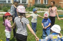 Мәктәп каршында оештырылган "Кояшкай" лагереның укучылары балалар бакчасында күңелле уеннар үткәрделәр. 16.06.2017