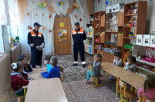 МЧС хезмәткәре Гасимов И.И. "Суда һәм боз өстендә игътибарлы бул!" дигән темага балалар белән әңгәмә үткәрде. 26.11.2018