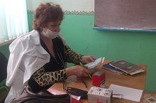 Педиатр - Надежда Викторовна балаларның сәламәтлеген кайгыртып чираттагы тикшерү үткәрә.