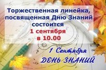 Торжественная линейка, посвященная Дню Знаний состоится 1 сентября 2020г. в 10.00 часов