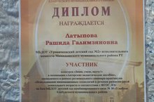 Воспитатель Латыпова Р.Г. заняла 2-е место в Республиканском фестивале среди воспитанников ДОУ, учащихся школ, обучающихся ПОО, учителей школ, преподавателей ПОО "Литературный край (Әдәби туган як), посвященного 70-летию Э. Шарифулинной. 01.02.2018