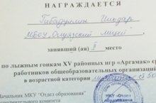Преподаватель-организатор ОБЖ Гибадуллин Ильдар Талгатович занял 2 ое место по лыжным гонкам XV районных игр "Аргамак" среди работников общеобразовательных учреждений в возрастной категории -Мужчины старше 50 лет.