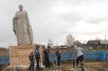 Сегодня в школе прошла акция "Мы помним о вас". Учащиеся школы убирали территорию возле памятника.
