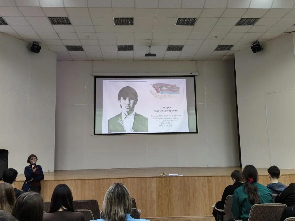 В рамках традиционного оборонно-массового месячника сотрудники краеведческого музея г. Мамадыш провели для студентов колледжа памятное мероприятие под названием «Герои Мамадышской земли».