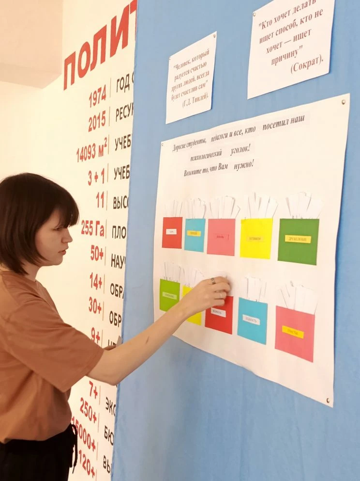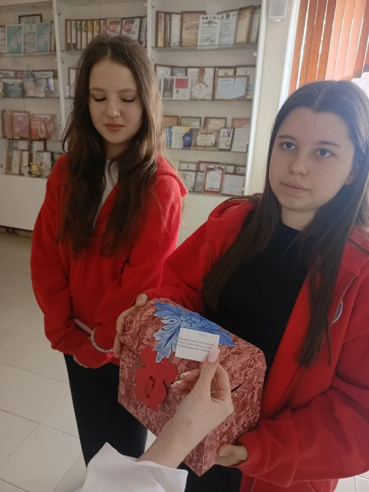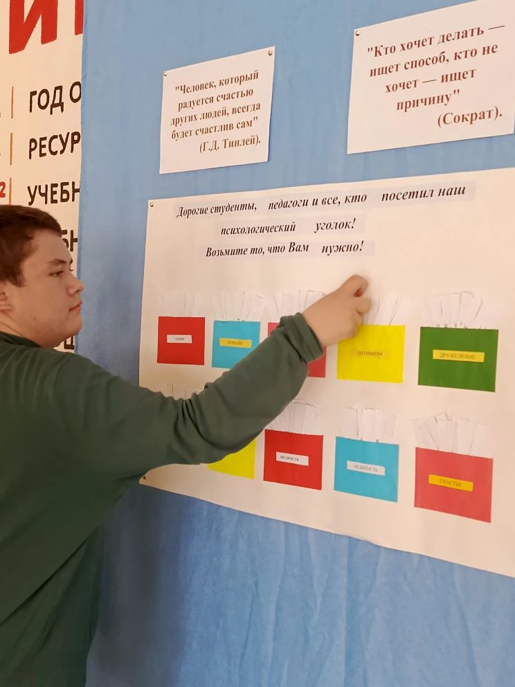 В продолжение недели психологии сегодня состоялась студенческая акция "Шкатулка пожеланий", где обучающиеся на большой перемене предлагали желающим вытащить из шкатулки пожелание сегодняшнего дня.