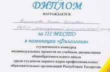 30 мая 2017 г. на базе ГАПОУ «Нижнекамский педагогический колледж» состоялся студенческий конкурс индивидуальных проектов по учебным дисциплинам общеобразовательного цикла среди студентов первого курса профессиональных образовательных организаций РТ.