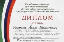 18 марта 2014 г. состоялся Республиканский конкурс ораторского мастерства "Лучшее публичное выступление среди студентов ССУЗ РТ.