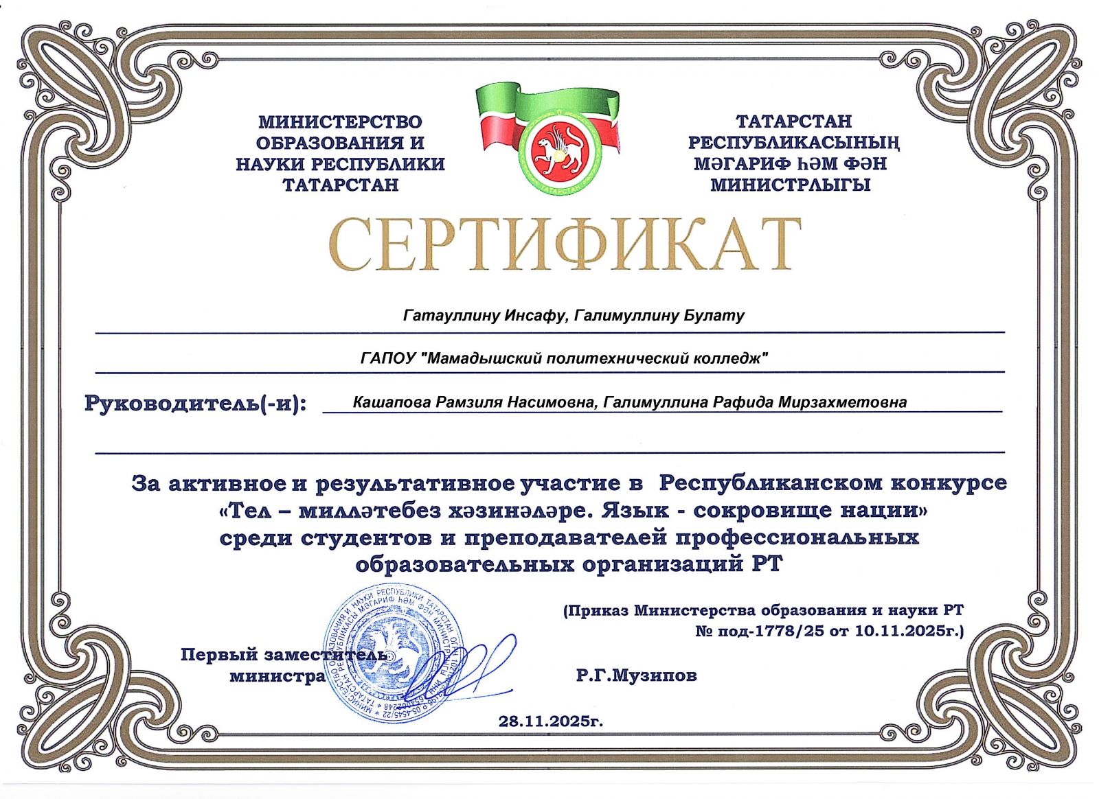 Подведены итоги Республиканского конкурса «Тел - миллэтебез хэзинэлэре. Язык - сокровище нации» среди студентов и преподавателей профессиональных образовательных организаций РТ.