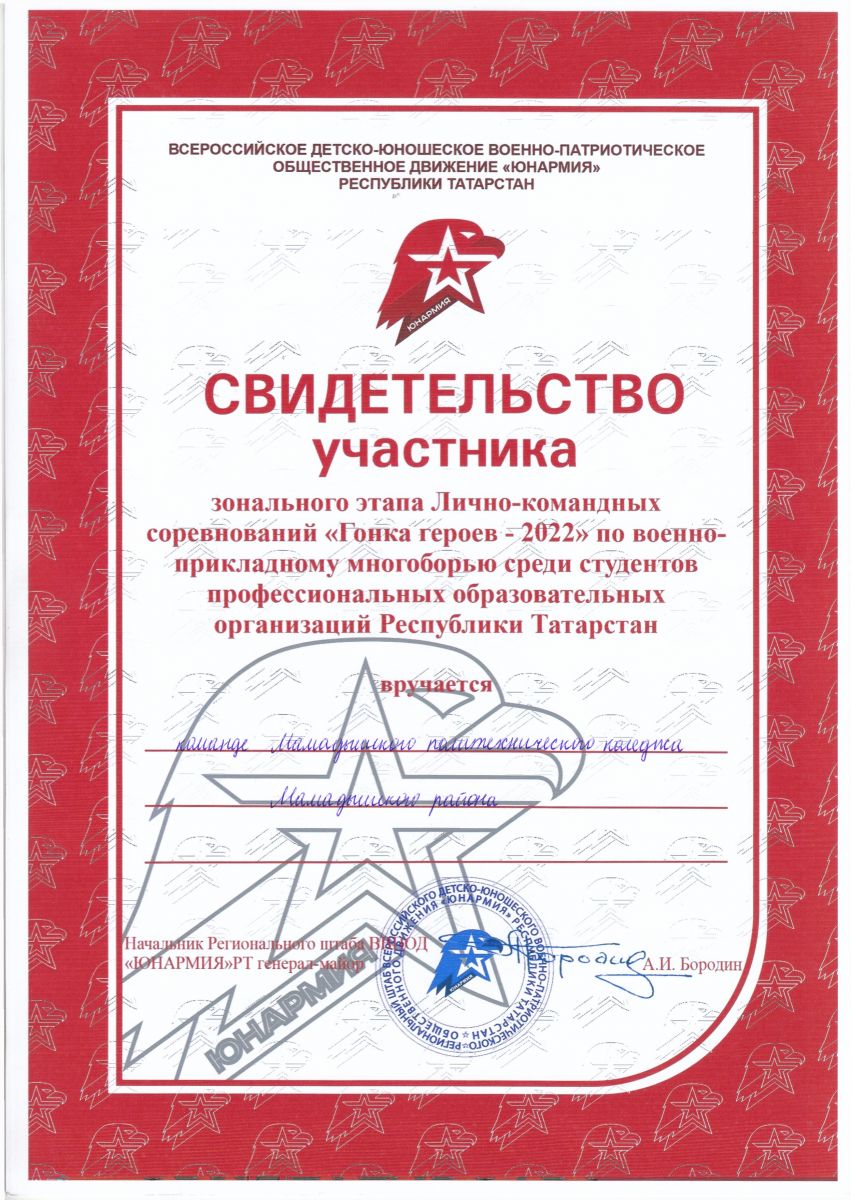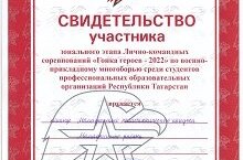 Команда ГАПОУ "Мамадышский ПК" приняла участие в зональном этапе лично-командных соревнований "Гонка героев - 2022" по военно-прикладному многоборью среди студентов профессиональных образовательных организаций РТ.