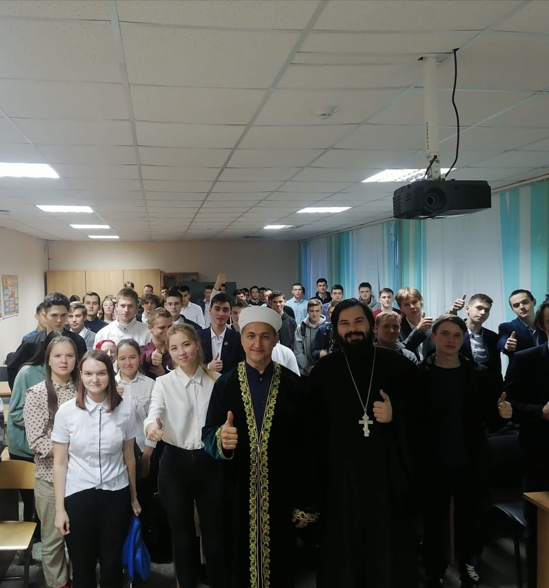 13.10.22 18 .10.22 толерантлык, халыкара дошманлыкка һәм экстремизмга юл куймау темаларына профилактик әңгәмәләр үткәрү кысаларында студентларның дини конфессияләр вәкилләре-изге Ксения гыйбадәтханәсе рухание — Олег һәм Мамадыш районы мөхтәсибе — Илһам хәзрәт белән очрашуы булды.