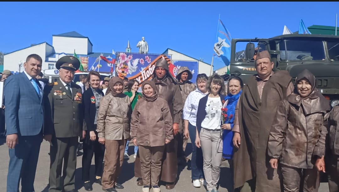 На митинге, посвящённом Празднику Победы 9 мая, в Красногорском сельском поселении наши студенты и преподаватели предствили Бессмертный полк. 9 Май бәйрәменә багышланган Кызыл Тау авыл җирлегендә үткәрелгән митингта безнең студентлар һәм укытучылар Үлемсез полк белән чыгыш ясадылар.