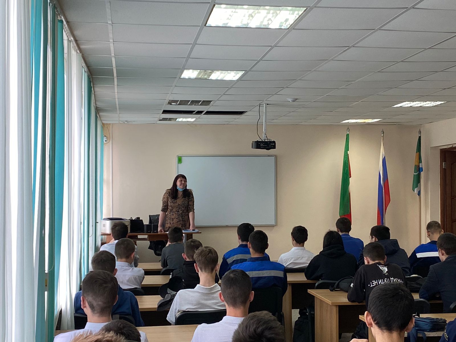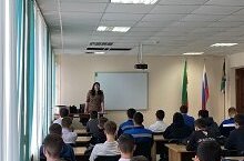 28 апреля состоялась встреча первокурсников с ведущим специалистом отдела правовой работы, инспектором по профилактике семейного неблагополучия и правонарушений среди несовершеннолетних Романовой С.Н.. 28 апрельдә беренче курста укучылар хокук эше бүлегенең әйдәп баручы белгече, балигъ булмаганнар арасында гаилә иминлеген һәм хокук бозуларны профилактикалау инспекторы Романова С.Н. белән очрашты.