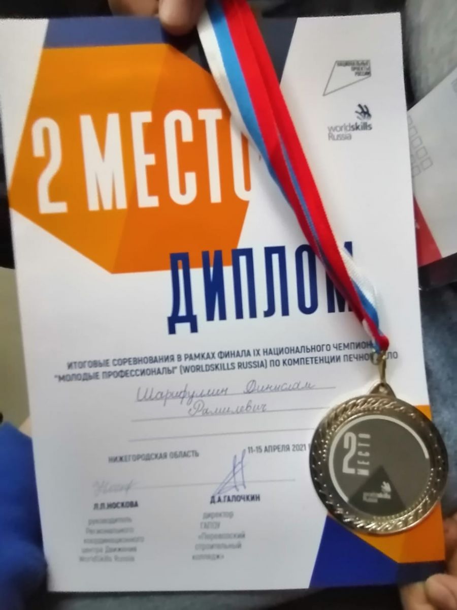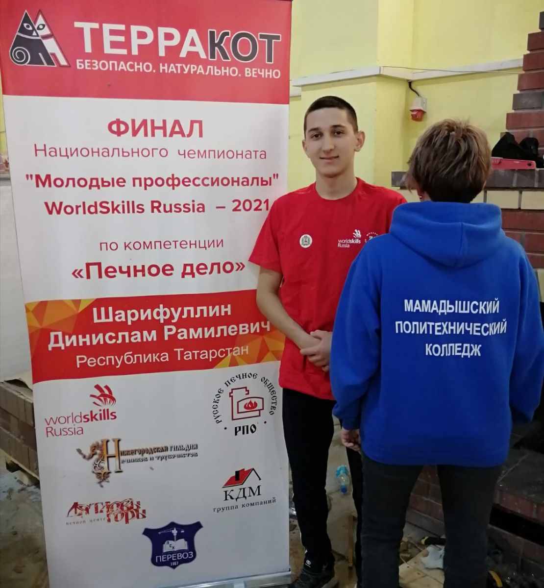 С 11-15 апреля 2021 г. состоялись итоговые соревнования в рамках финала IX Национального чемпионата «Молодые профессионалы» (Worldskiils Russia) по компетенции Печное дело. 021 елның 11-15 апрелендә «Яшь профессионаллар» (Worldskiils Russia) IX Милли чемпионатының "Печное дело" компетенциясе буенча финал ярышлары узды. ДАҺБУ «Мамадыш политехник көллияте»нең 3 курс студенты Шәрифуллин Динислам мактаулы 2 урынны яулады.