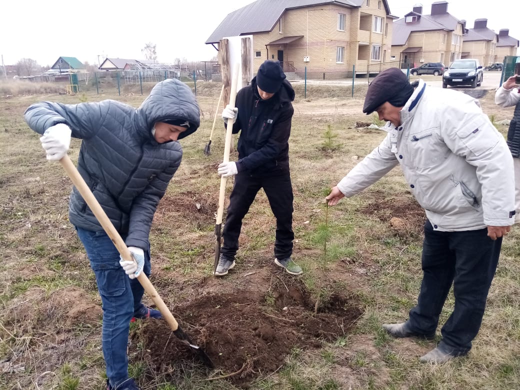 Сегодня наши студенты на субботнике в посёлке с-за "Мамадышский" сажают деревья. Бүген безнең студентлар "Мамадыш совхозы" поселогында шимбә өмәсендә агач утырталар.