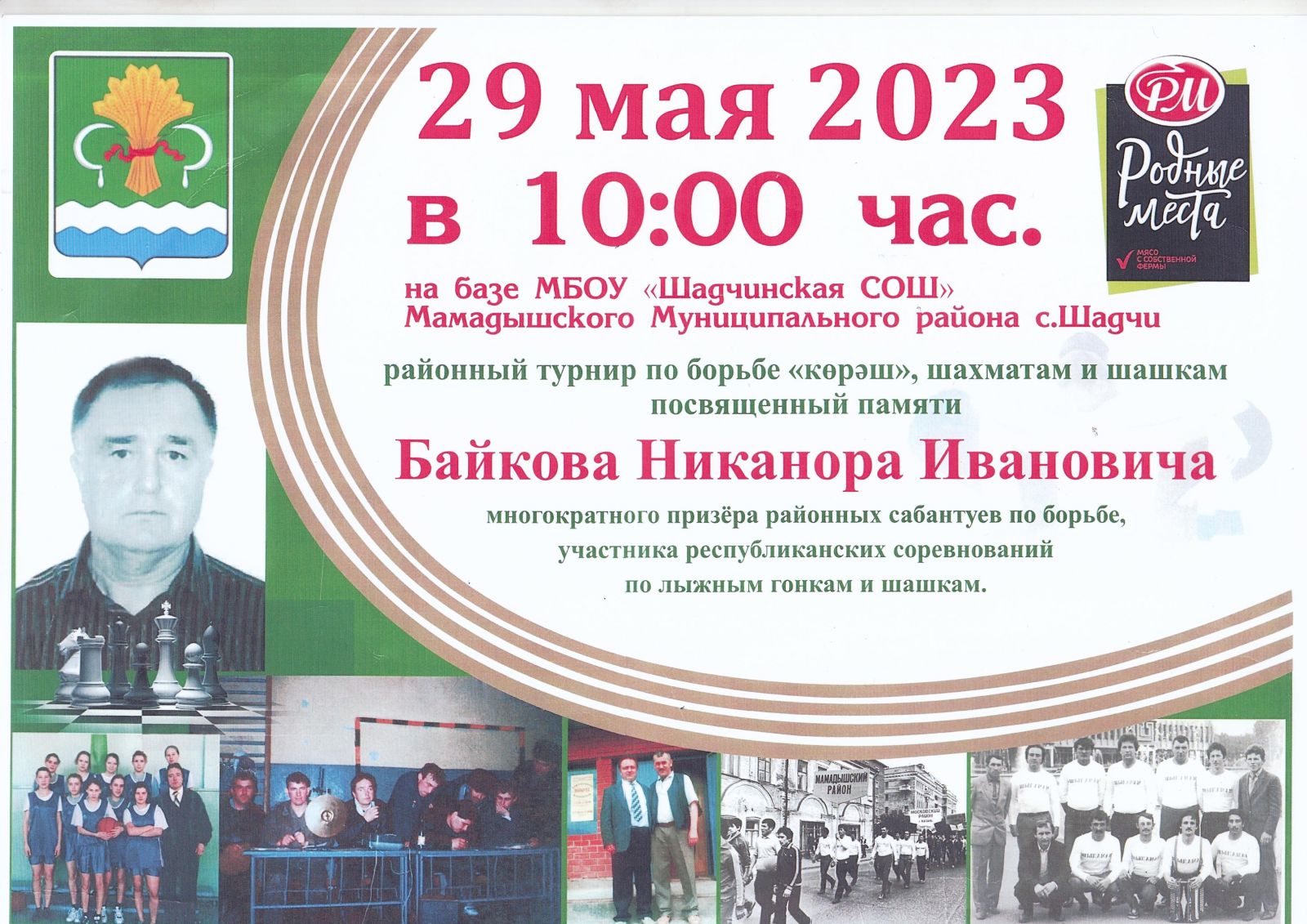 Опубликовано: 29.05.202329 мая 2023 г. на базе МБОУ "Шадчинская СОШ" состоялся турнир, посвященный памяти Байкова Никанора Ивановича, многократного призера районных сабантуев по борьбе, участника республиканских соревнований по лыжным гонкам и шашкам. Студент колледжа Галимуллин Булат занял почетное 3 место в турнире по шашкам. Поздравляем!