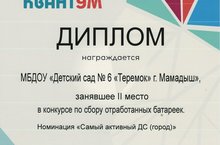 | Короткое название: | МБДОУ "ДС № 6 "Теремок" г. Мамадыш" |