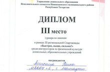 Наш коллега, приняла участие в III региональной Спартакиаде "Быстрее, выше, сильнее!" среди инструкторов по физической культуре дошкольных образовательных учреждений. И заняла почётное 3 место в турнире по шашкам. Молодец, Раиса Вячеславовна, дальнейших побед тебе.