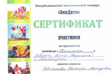 Наши обучающие, команда "Капельки" приняли участие в республиканском экологическом конкурсе "ЭкоДети" . Каждую неделю для детей присылались домашние задания, которые дети должны были выполнить. Наша команда "Капельки" с каждым заданием спрашивились хорошо.