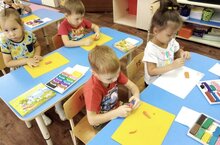 Обучать детей лепить, используя уже знакомые приёмы( раскатывание шара, сплющивание) и новые- вдавливание и оттягивание краёв, уравнивание их пальцами; лепить всей кистью и пальцами. средняя группа "Звездочеты"сегодня учат лепить предметы удлиненный формы,сужающие к одному концу,слегка оттягивая и сужая конец пальцами;закреплять умение лепить большие и маленькие предметы,аккуратно и обращаться с материалом.