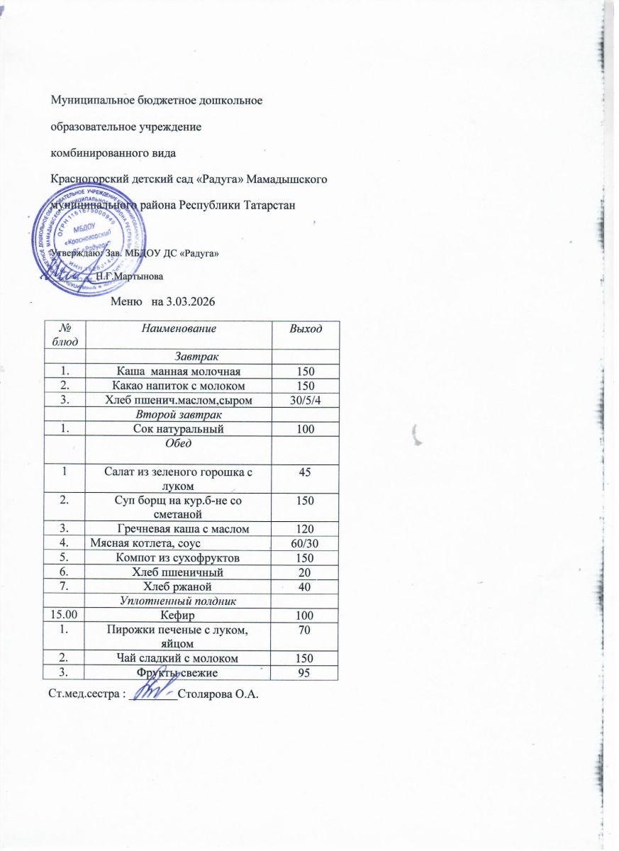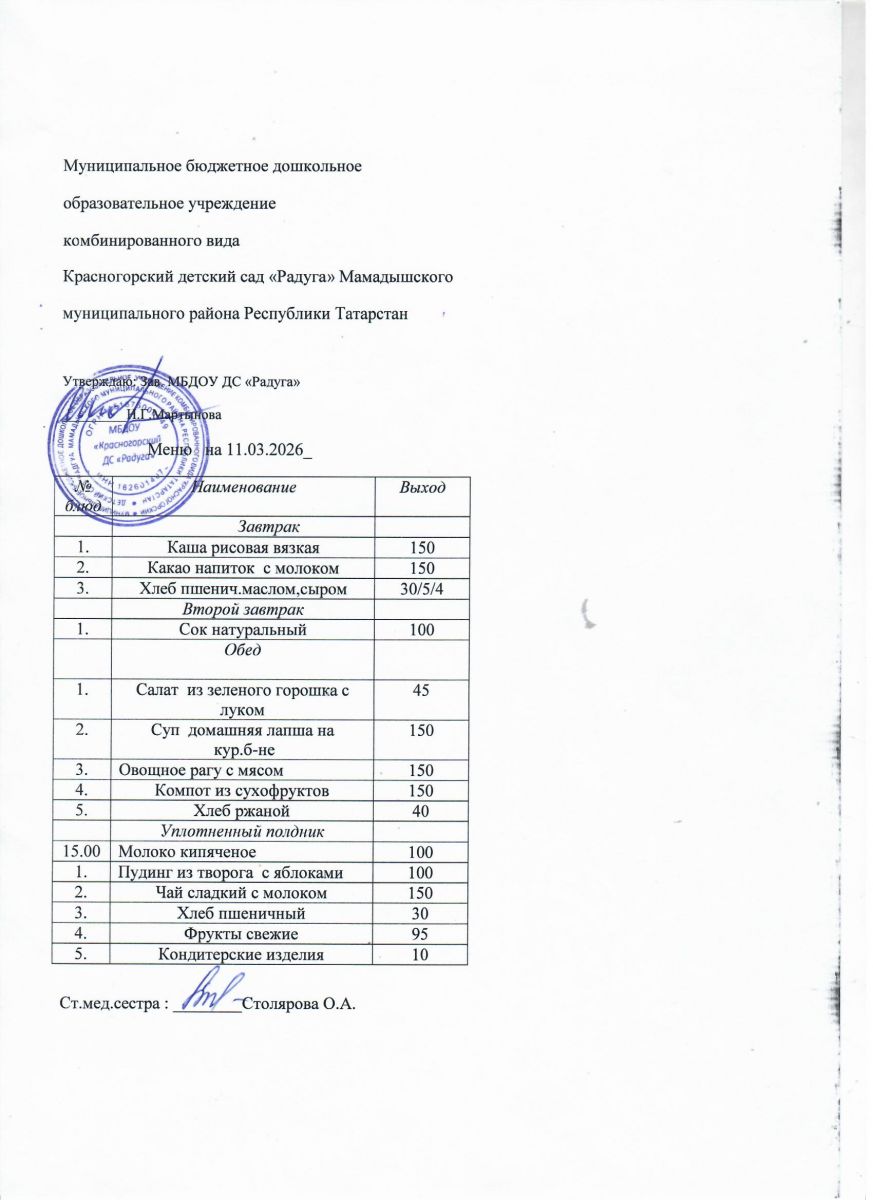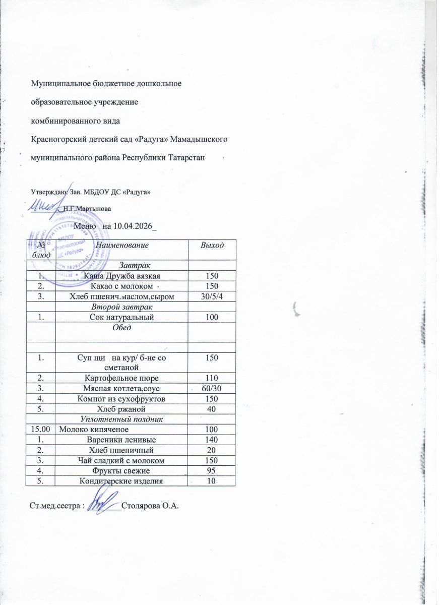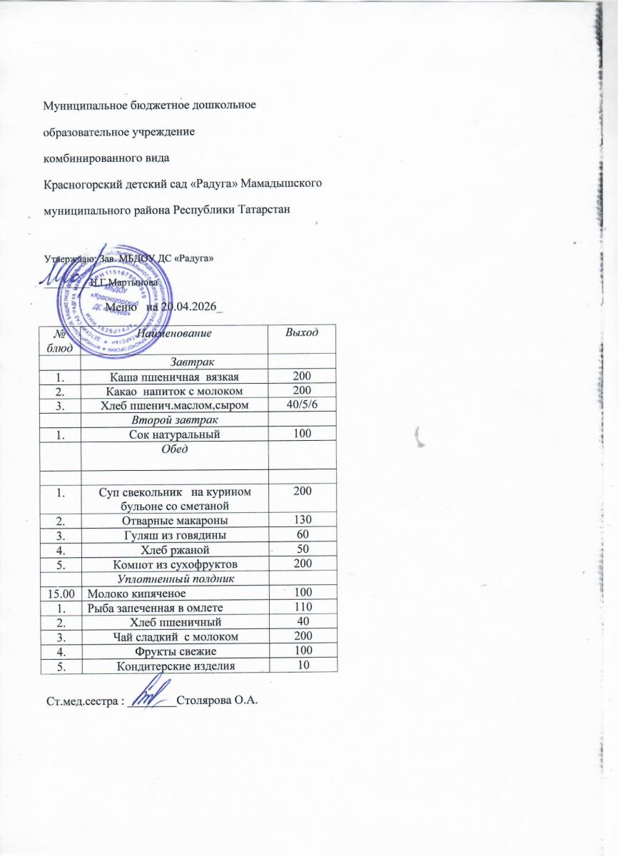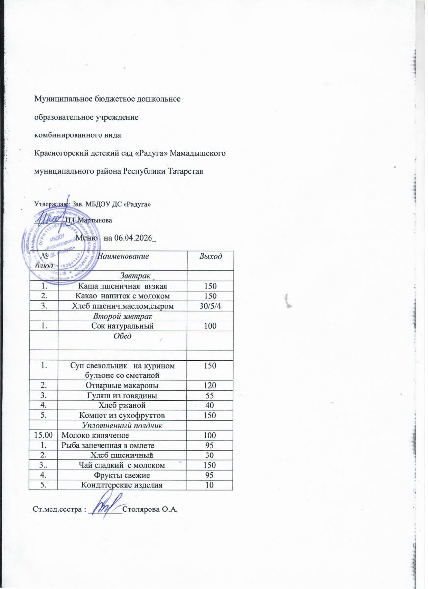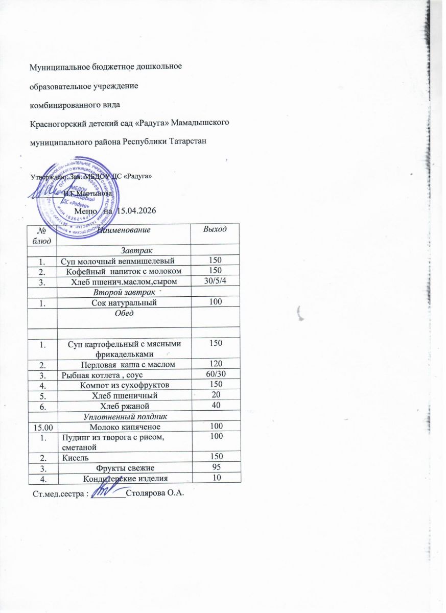 Муниципальное бюджетное дошкольное образовательное учреждение комбинированного вида «Красногорский детский сад «Радуга» Мамадышского муниципального района РТ