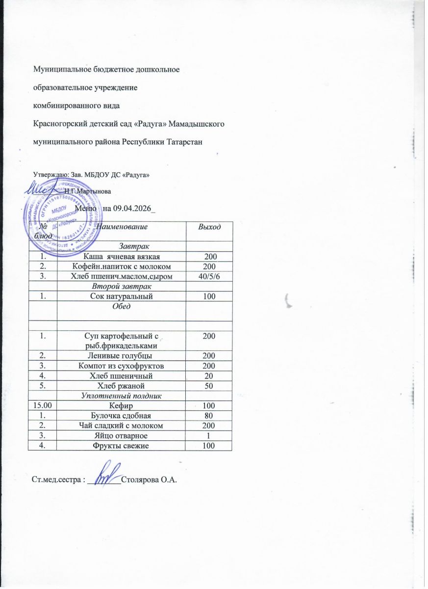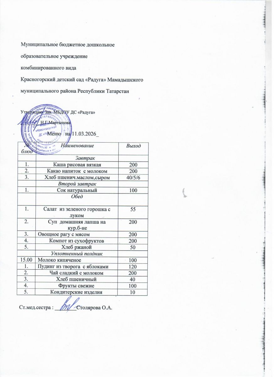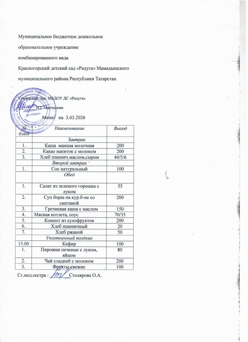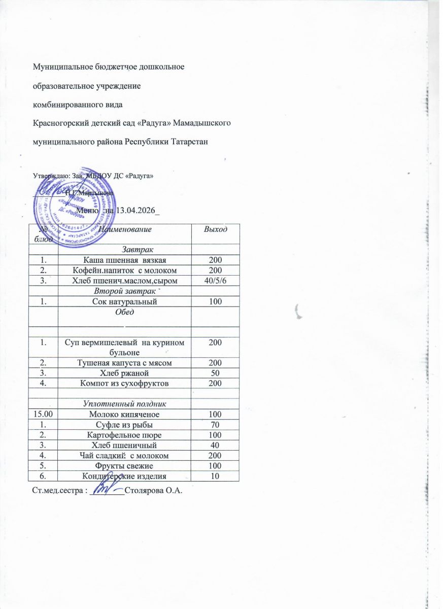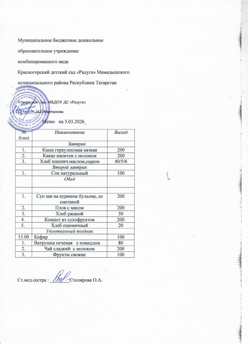 Муниципальное бюджетное дошкольное образовательное учреждение комбинированного вида «Красногорский детский сад «Радуга» Мамадышского муниципального района РТ
