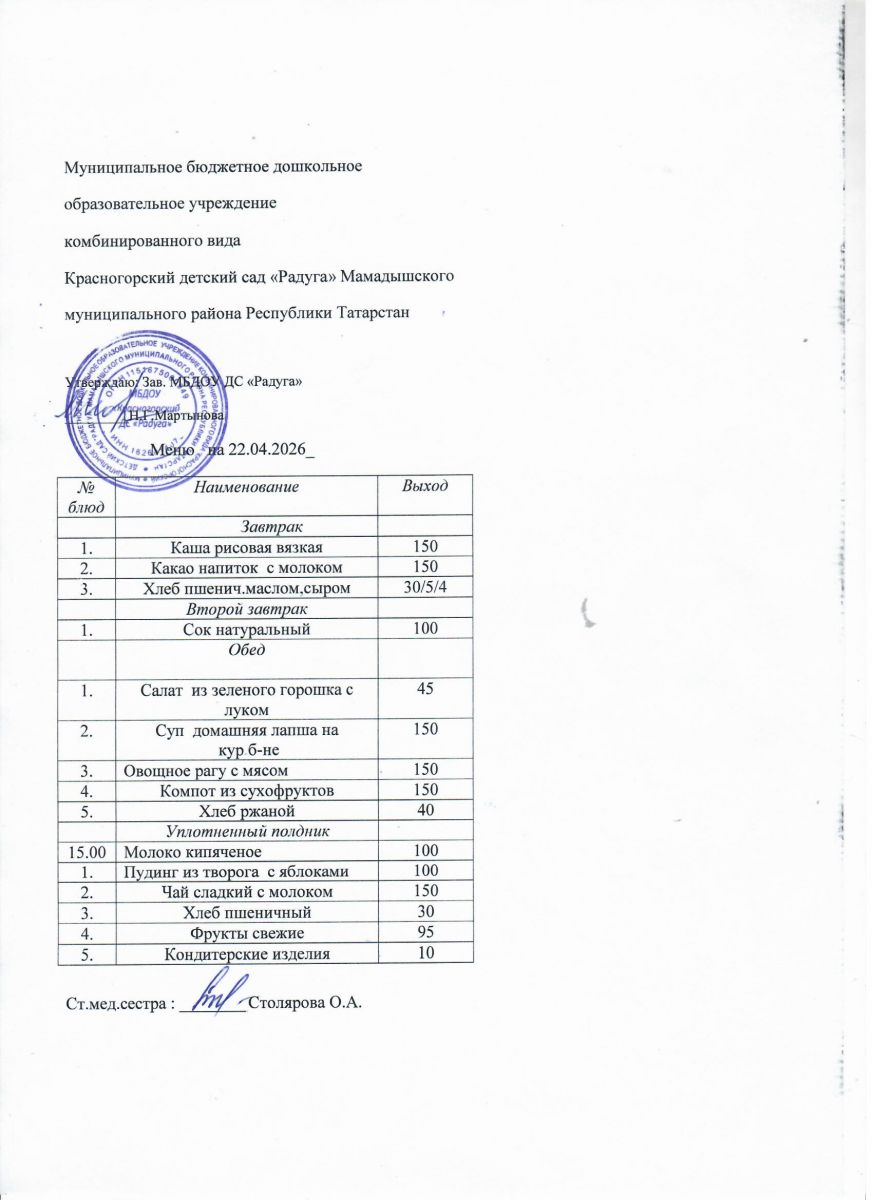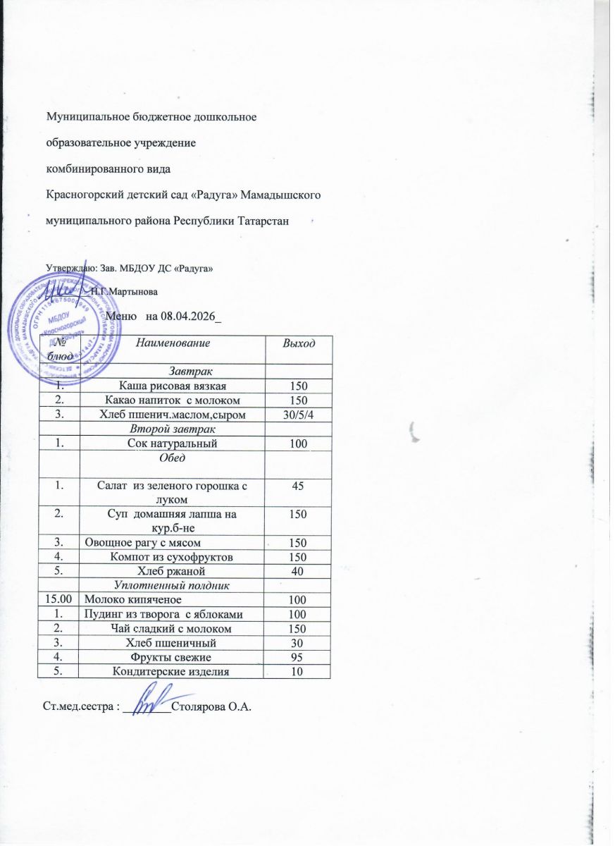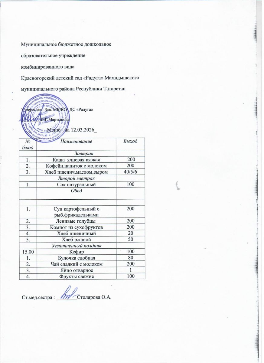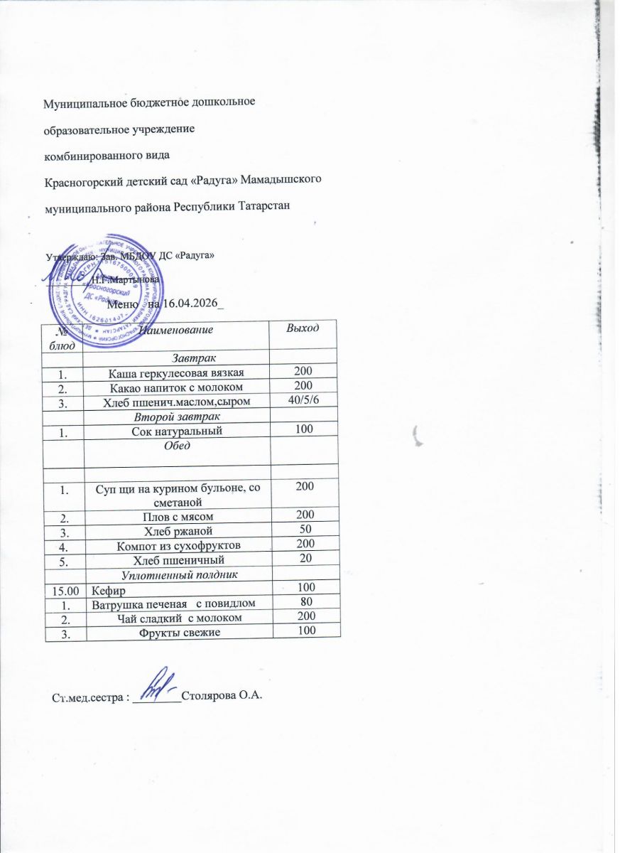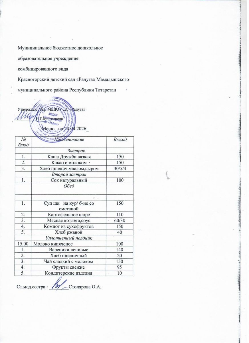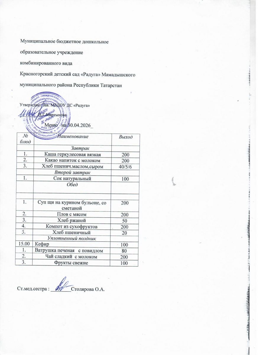 Муниципальное бюджетное дошкольное образовательное учреждение комбинированного вида «Красногорский детский сад «Радуга» Мамадышского муниципального района РТ