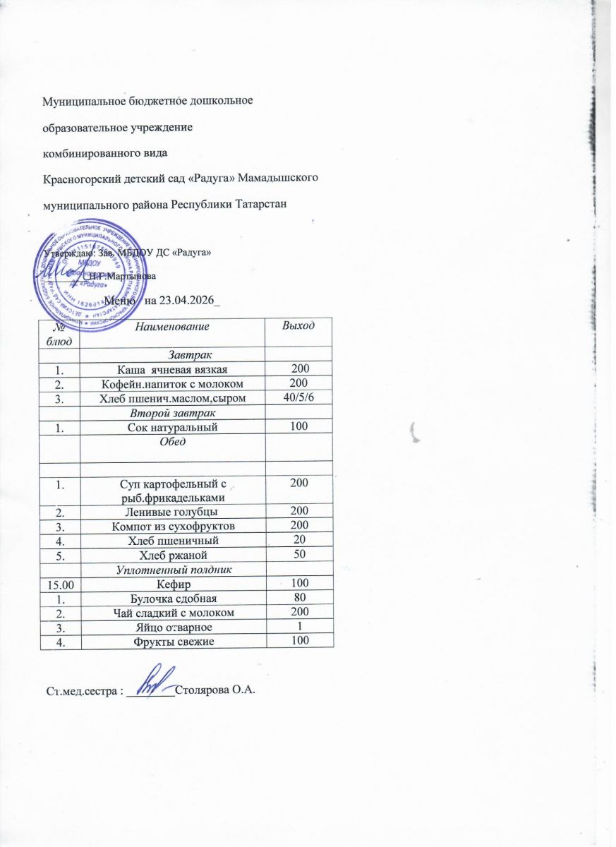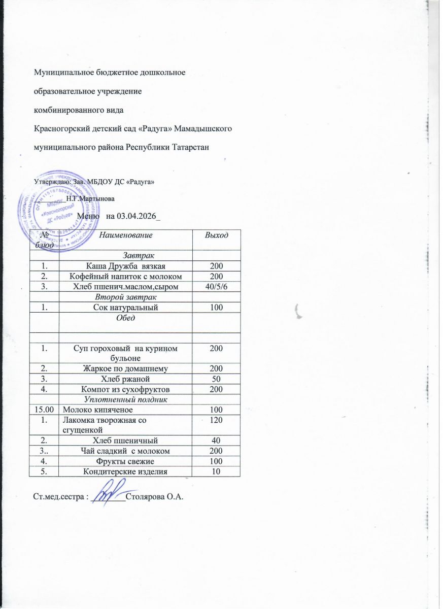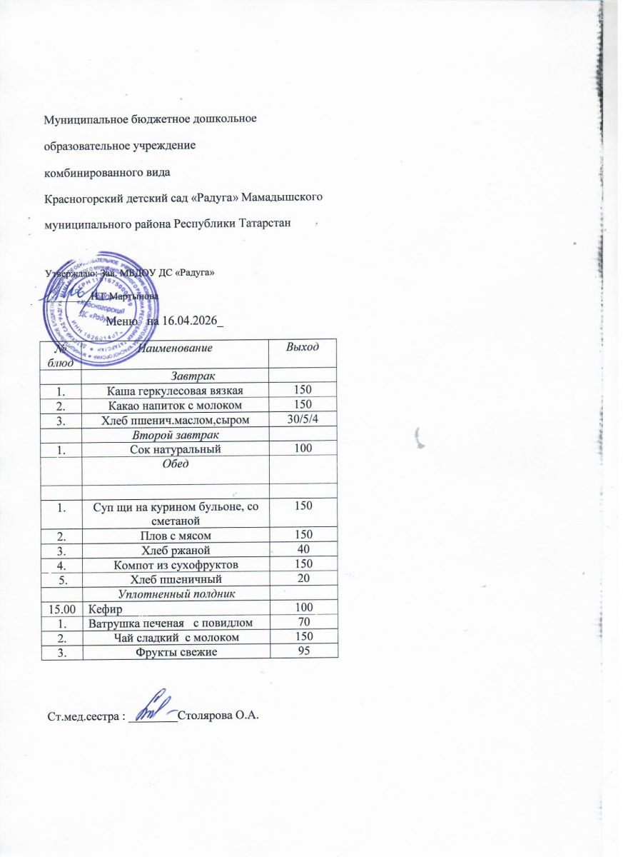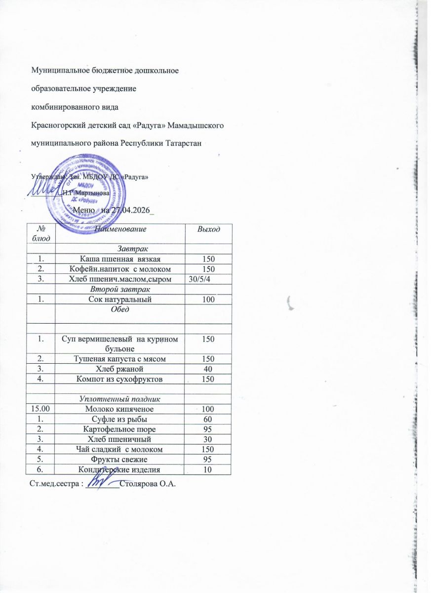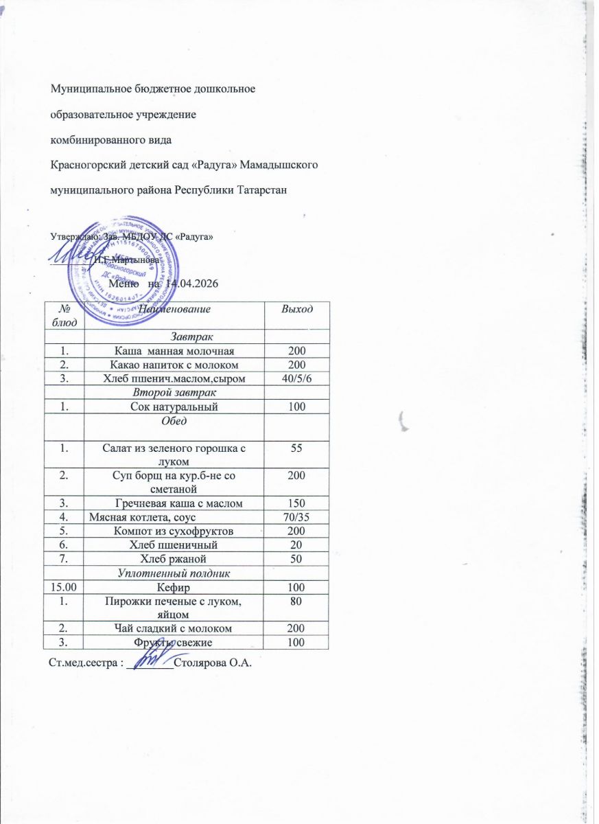 Муниципальное бюджетное дошкольное образовательное учреждение комбинированного вида «Красногорский детский сад «Радуга» Мамадышского муниципального района РТ
