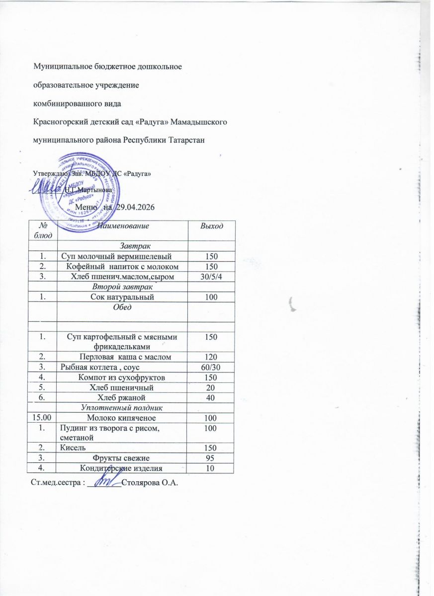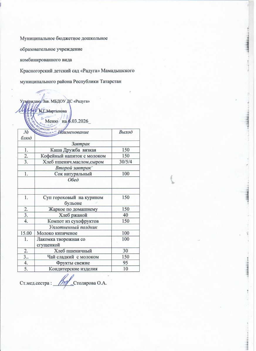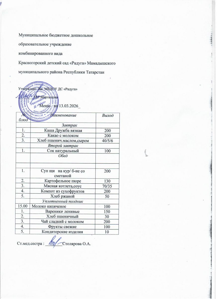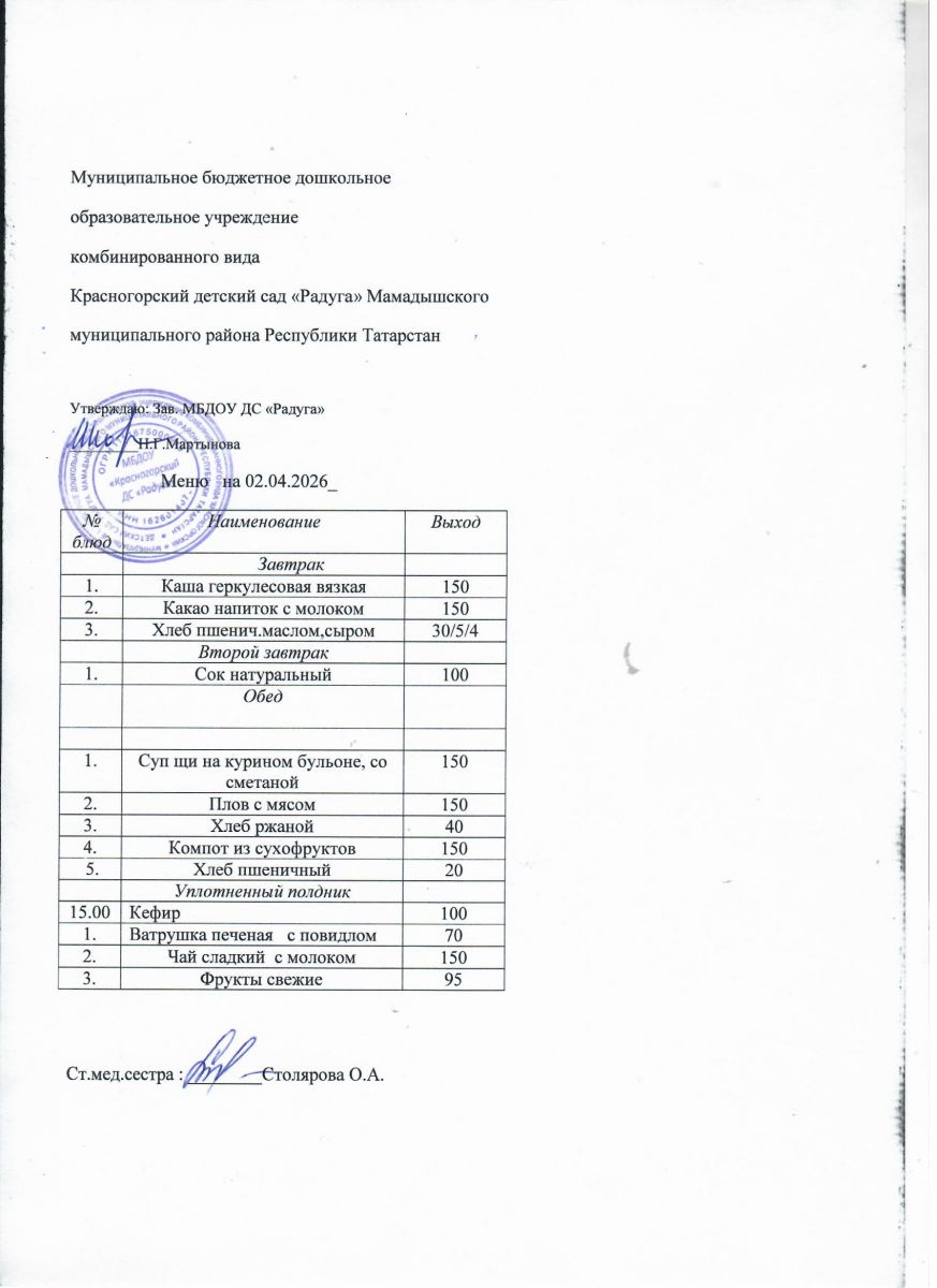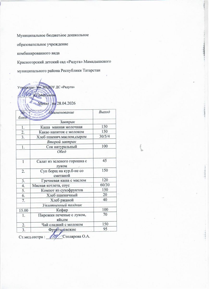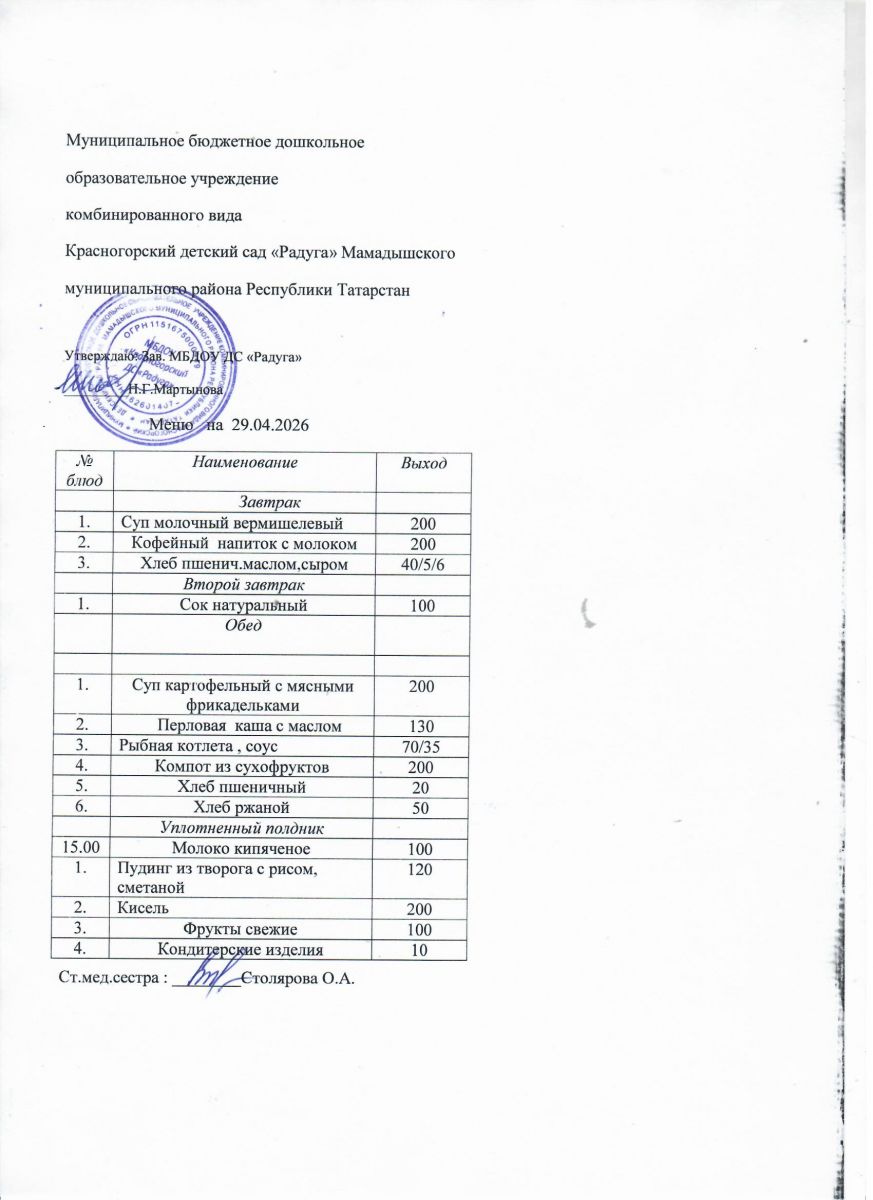 Муниципальное бюджетное дошкольное образовательное учреждение комбинированного вида «Красногорский детский сад «Радуга» Мамадышского муниципального района РТ