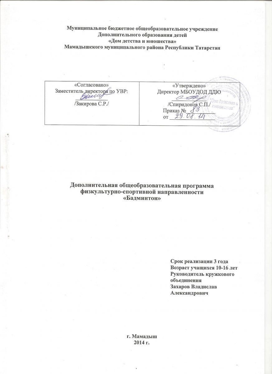 "Бадминтон" Захаров В. А.