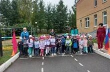 Понедельник в детском саду начался с торжественной линейки, на которой прошла церемония выноса государственных флагов РФ и РТ и исполнение гимна.
