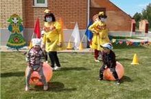 Веселое развлечение состоялось сегодня в старшей группе на территории детского сада.