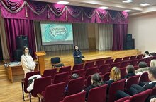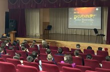 В актовом зале в рамках дня добровольца для учащихся 8-10 классов прошла встреча с руководителем добровольческой организации и главным