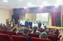 Детям был представлен мотивирующий видеоролик, далее прошло построение 11 учеников, которые, произнося клятву, вошли в состав отряда "Юнармия".