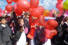 Традиционным стало шествие колонны школы на празднике День Победы. Ученики 5-11 классов с красными шарами, флагами, портретами ветеранов- Героев Советского Союза поздравили ветеранов с праздником.