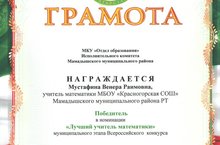 Мустафина Венера Раимовна, учитель математики МБОУ "Красногорская СОШ", стала победителем в номинации "Лучший учитель математики" муниципального этапа Всероссийского конкурса "Учитель года - 2015"!