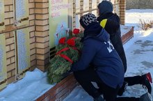 Сегодня, юноармейцы возложили гирлянду к памятнику "Погибших в годы ВОВ" в честь празднования Дня защитников Отечества.