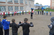 Ежедневно утро в пришкольном лагере начинается с зарядки.