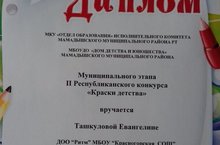 Ученица 1А класса Ташкулова Е. стала победителем муниципального этапа республиканского конкурса "Краски детства"
